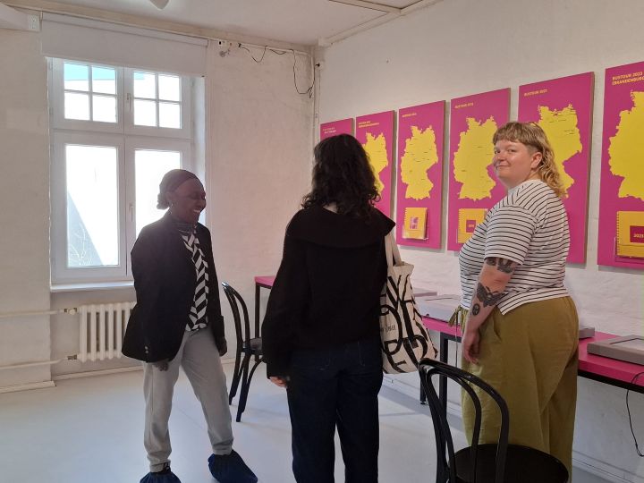 Unsere Ausstellung im Museum für Friedrichshain-Kreuzberg endet Mitte Mai. Falls ihr sie noch nicht gesehen habt, besucht bitte das Museum bis dahin. Am 23. April haben wir unsere erste Führung für Studierende der Alice-Salomon-Hochschule durchgeführt. Die Studierenden belegen den Masterstudiengang „Sozialarbeit als Menschenrechtsberuf“ im Modul „Globale Sozialarbeit“.