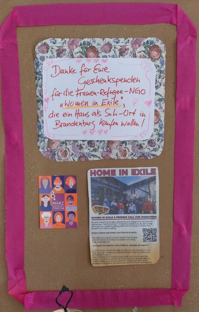 Unser Bauteam ist weiterhin aktiv – unten findet ihr Bilder von unserer gemeinsamen Arbeit am Samstag, den 07.03., im Geist der feministischen internationalen Frauen*woche. Geflüchtete Frauen freuen sich schon darauf, bald einen kleinen Garten anzulegen.
